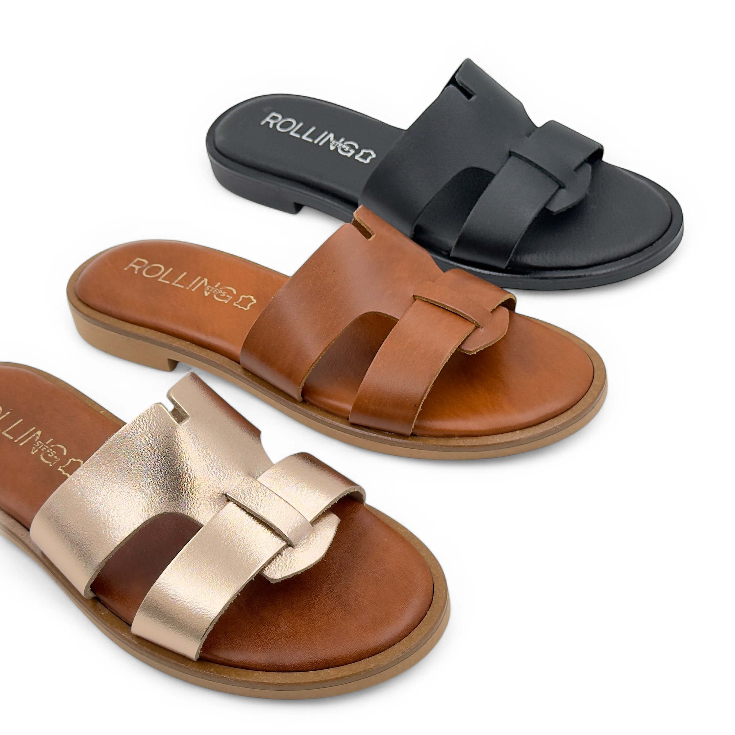 Γυναικεία FLAT από τη συλλογή ROLLING STEPS, Ταμπά, Δερμάτινο με τακούνι χαμηλό 2cm