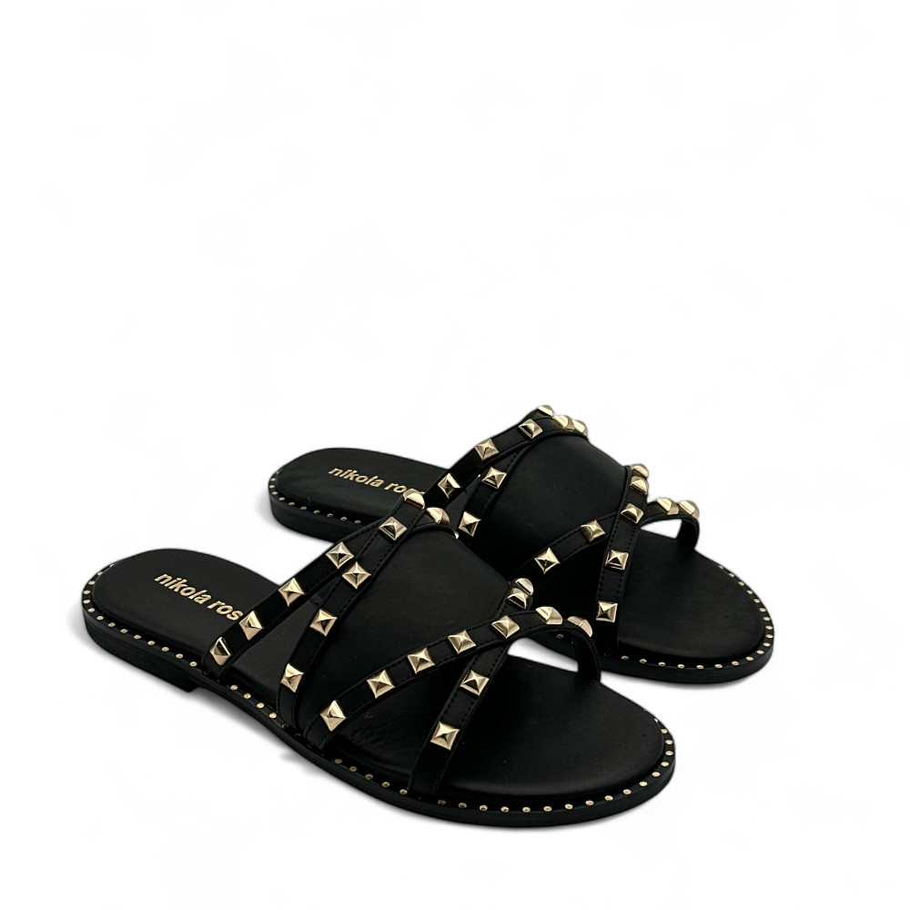 Γυναικεία FLAT από τη συλλογή NIKOLA ROSSI, Μαύρο, Δερμάτινο με τακούνι χαμηλό 2cm