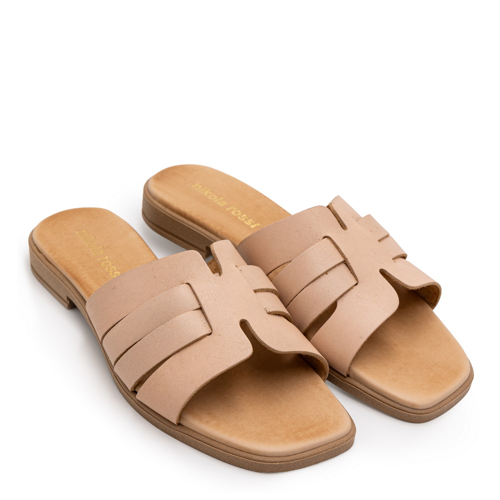 Γυναικεία FLAT από τη συλλογή NIKOLA ROSSI, Μπεζ, Δερμάτινο με τακούνι χαμηλό 2cm