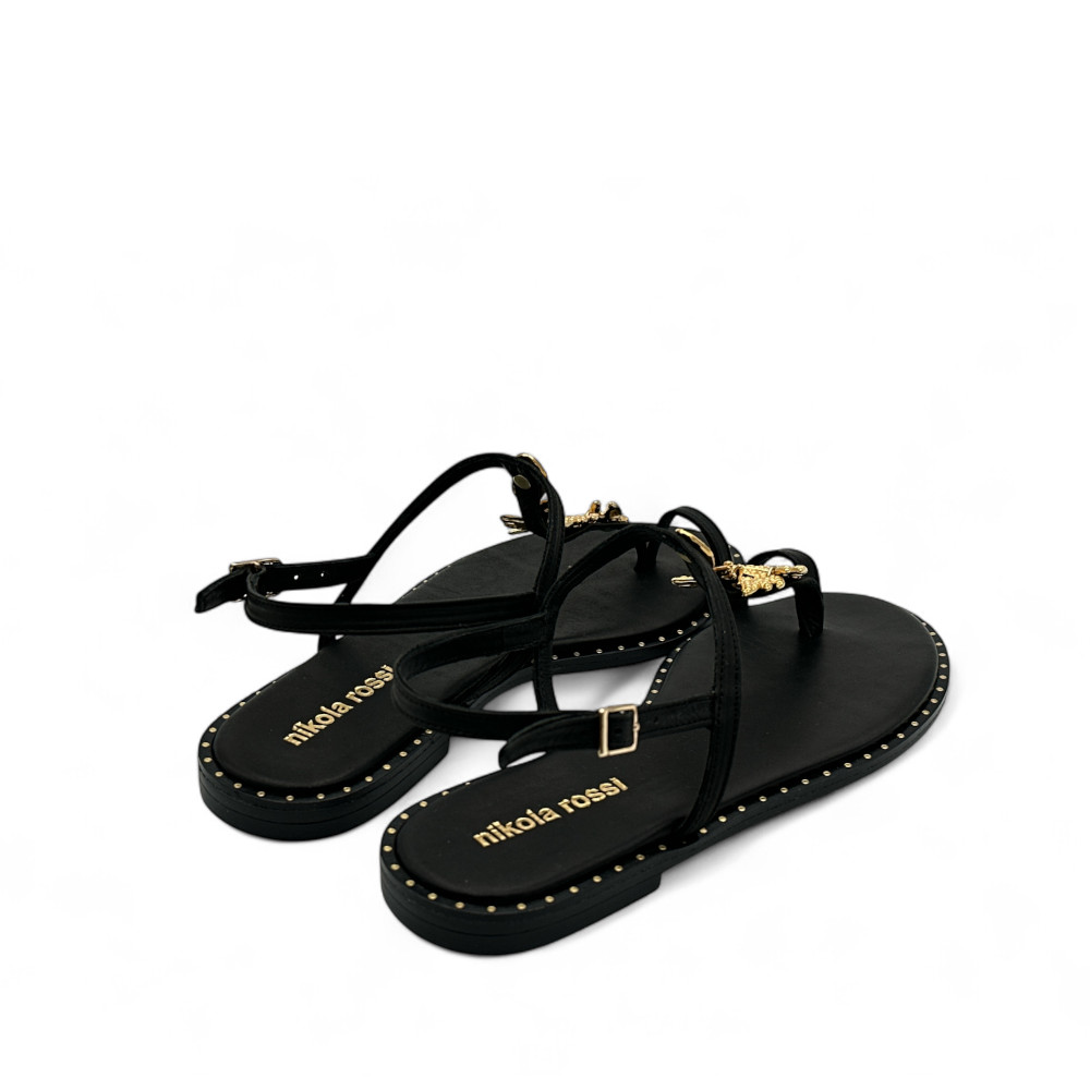 Γυναικεία FLAT από τη συλλογή NIKOLA ROSSI, Μαύρο, Δερμάτινο με τακούνι χαμηλό 2cm