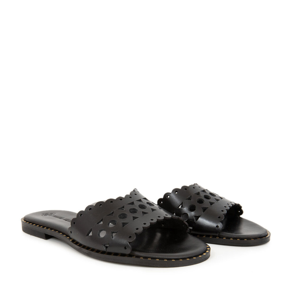 Γυναικεία FLAT από τη συλλογή MAKIS KOTRIS, Μαύρο, Δερμάτινο με τακούνι χαμηλό 2cm
