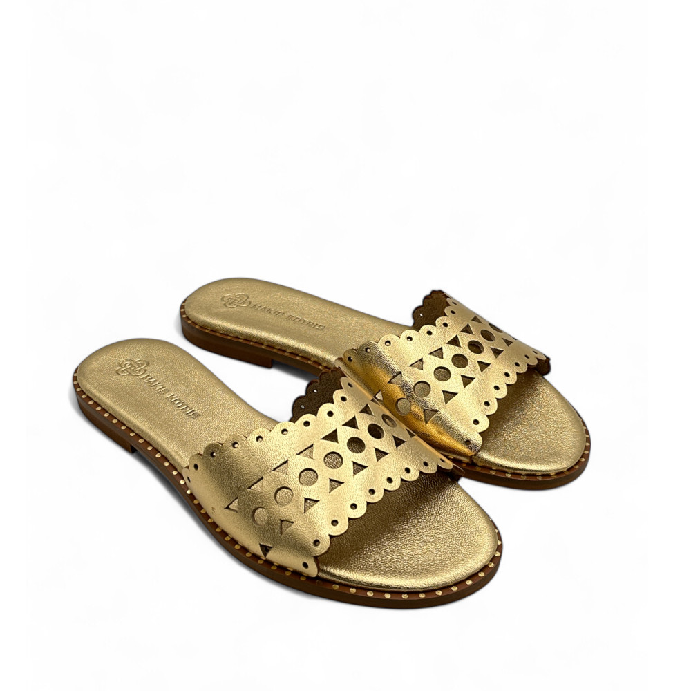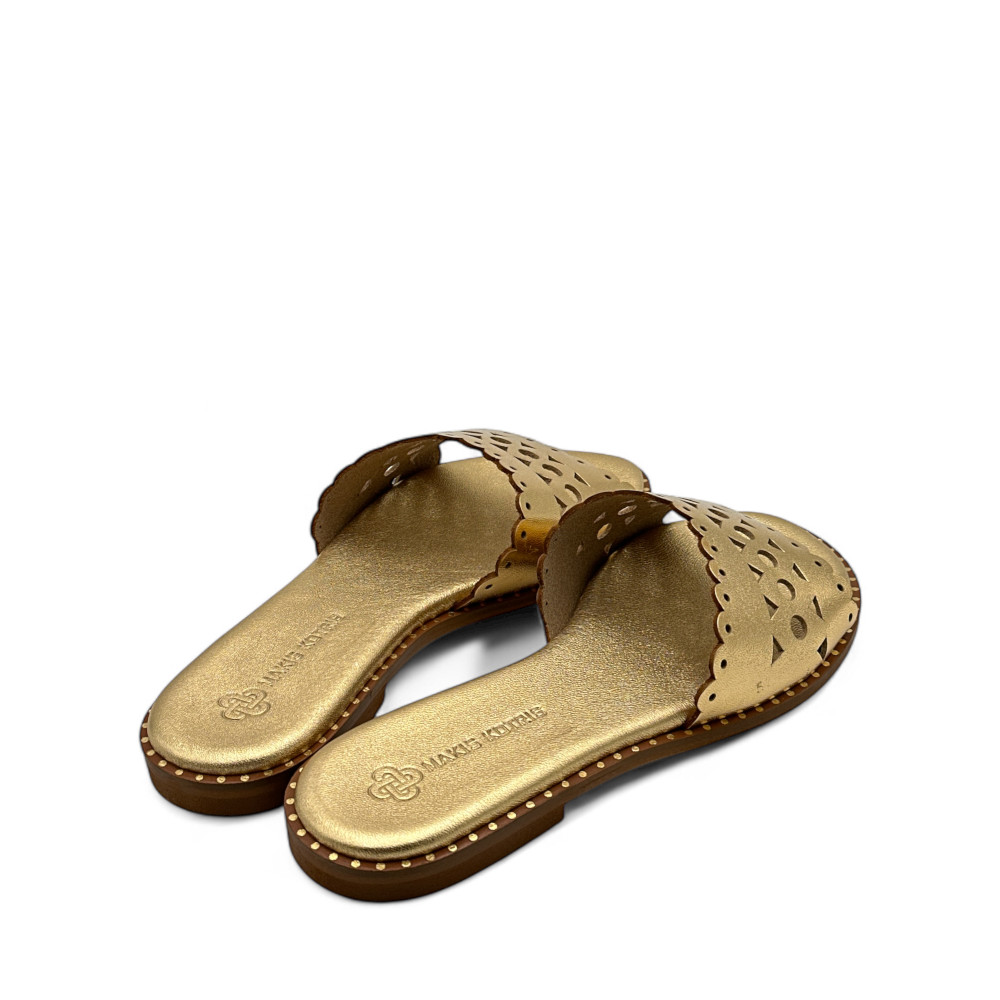 Γυναικεία FLAT από τη συλλογή MAKIS KOTRIS, Χρυσό, Δερμάτινο με τακούνι χαμηλό 2cm