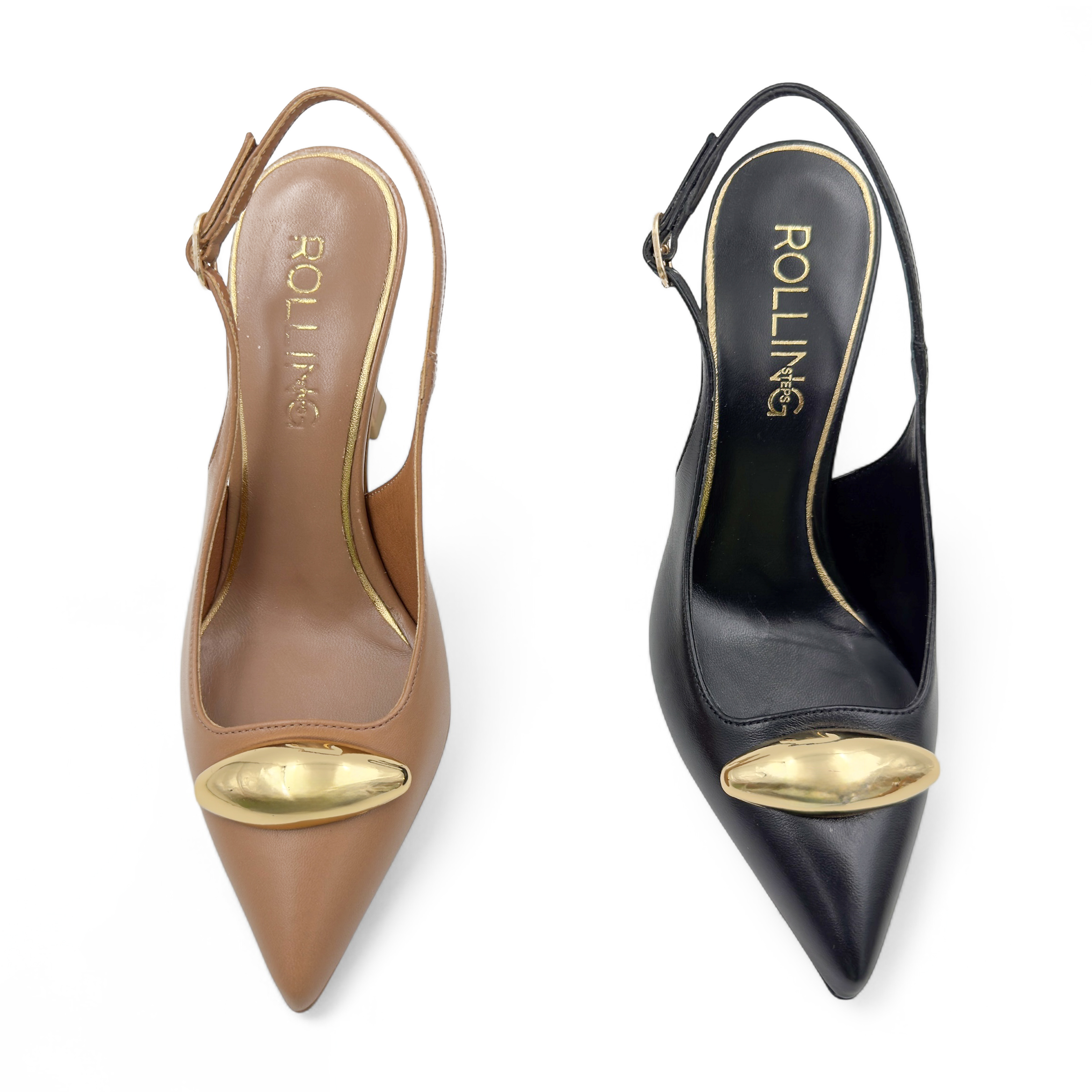 Γυναικείες ΓΟΒΕΣ από τη συλλογή ROLLING STEPS, Μπισκοτί, Δερμάτινο με τακούνι ψηλό 9cm