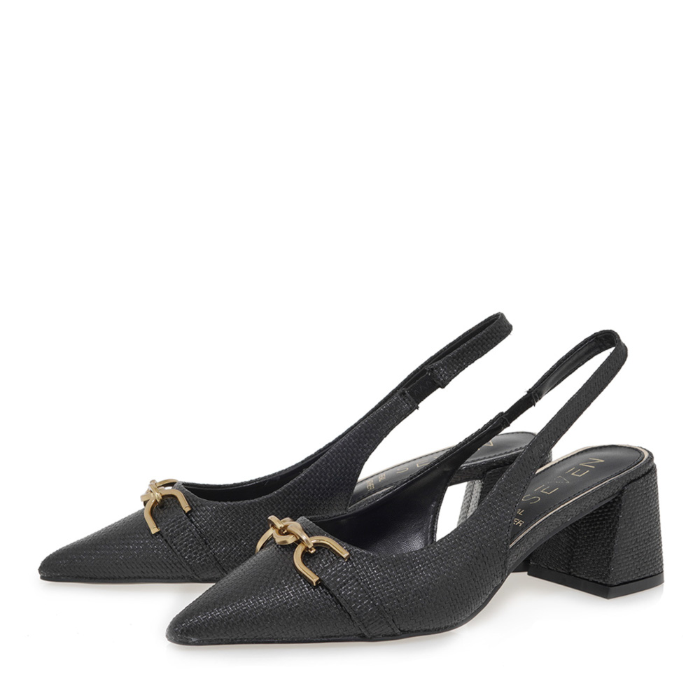 Γυναικείες ΓΟΒΕΣ από τη συλλογή SEVEN, Μαύρο, Ψάθα με τακούνι μεσαίο 6cm