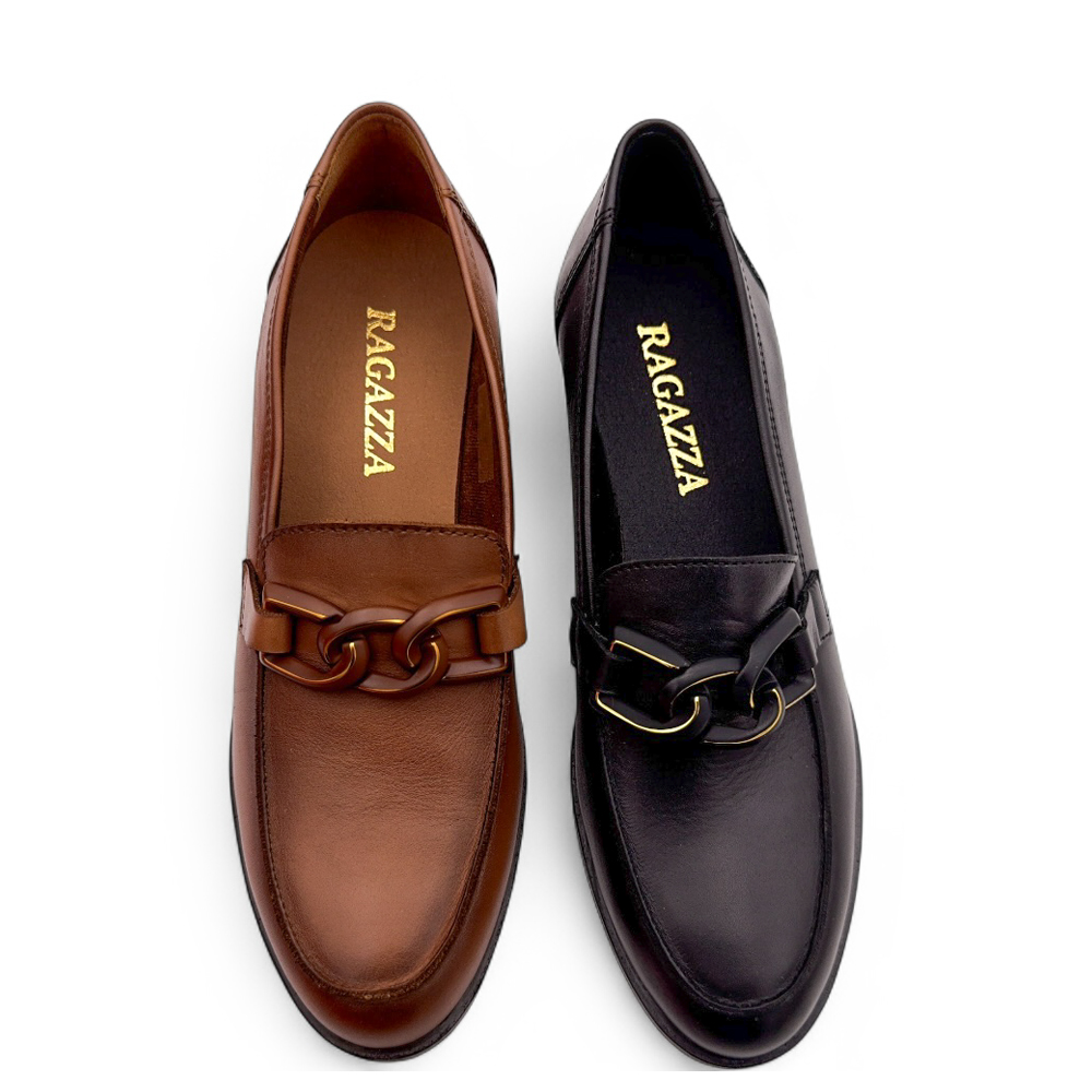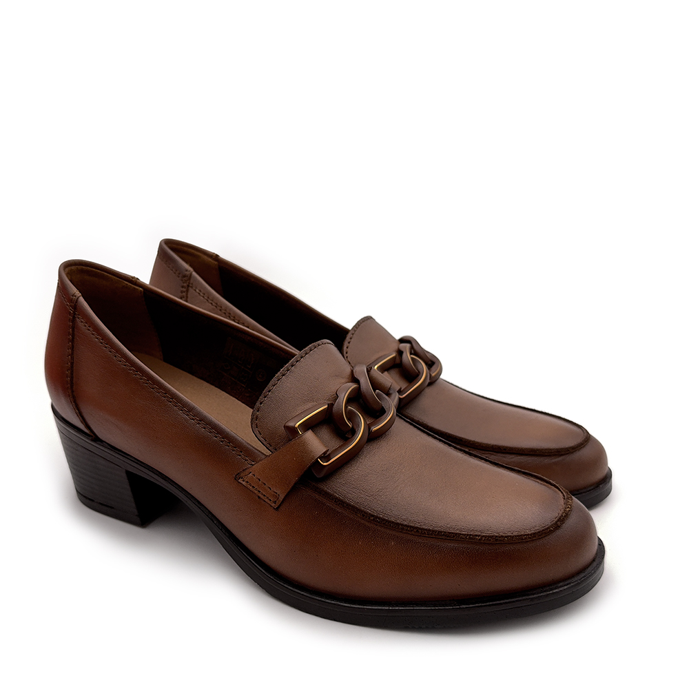 Γυναικεία LOAFERS από τη συλλογή Ragazza, Καφέ, Δερμάτινο με τακούνι μεσαίο 6cm