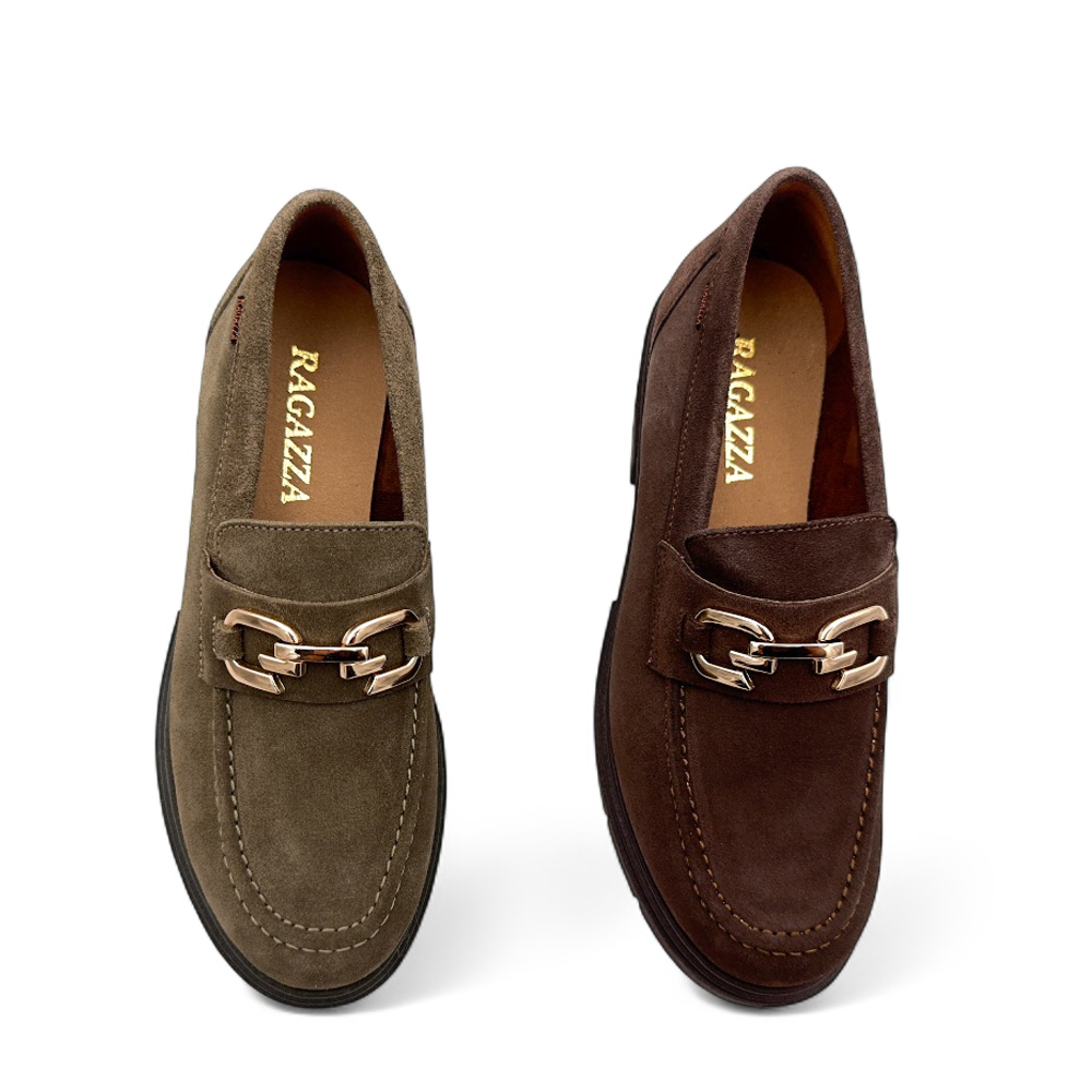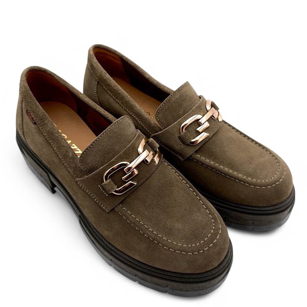 Γυναικεία LOAFERS από τη συλλογή Ragazza, Λαδί, Καστόρι δέρμα με τακούνι μεσαίο 4cm