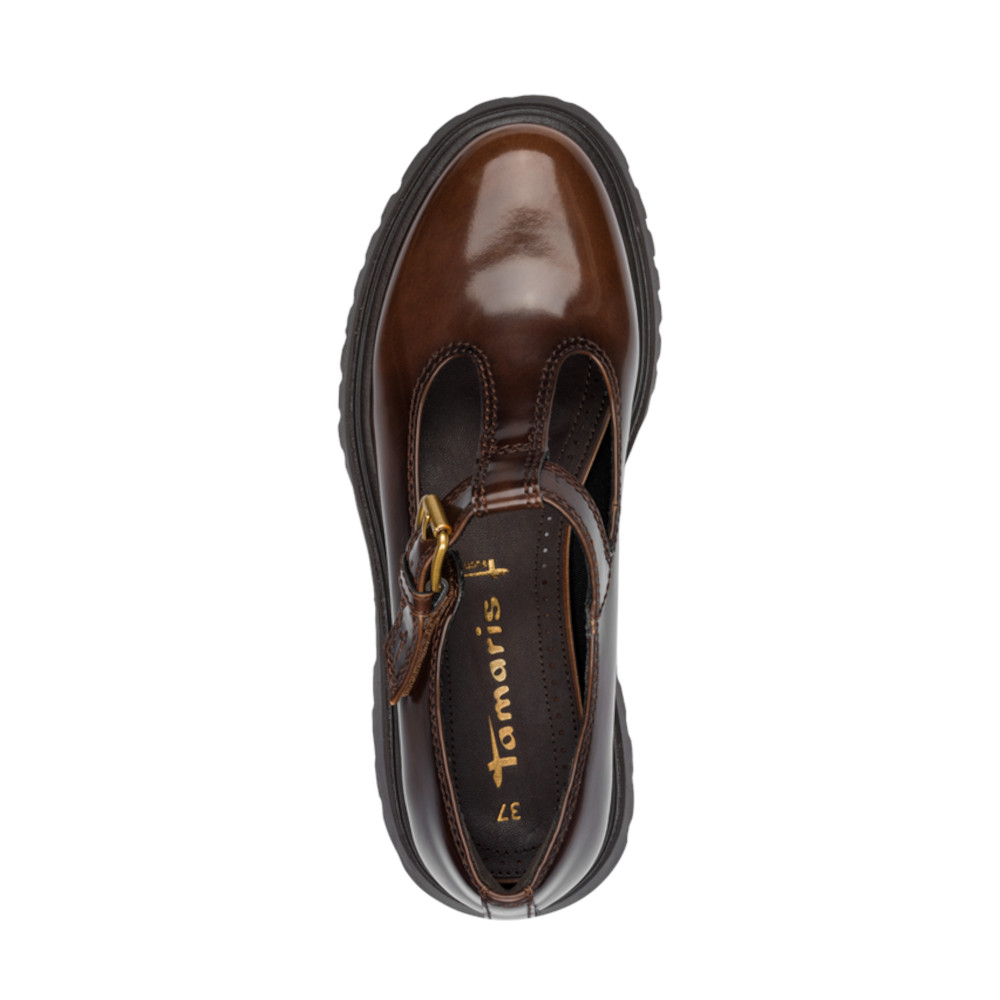 Γυναικεία MARY JANES από τη συλλογή TAMARIS, Καφέ, Συνθετικό με τακούνι μεσαίο 5cm