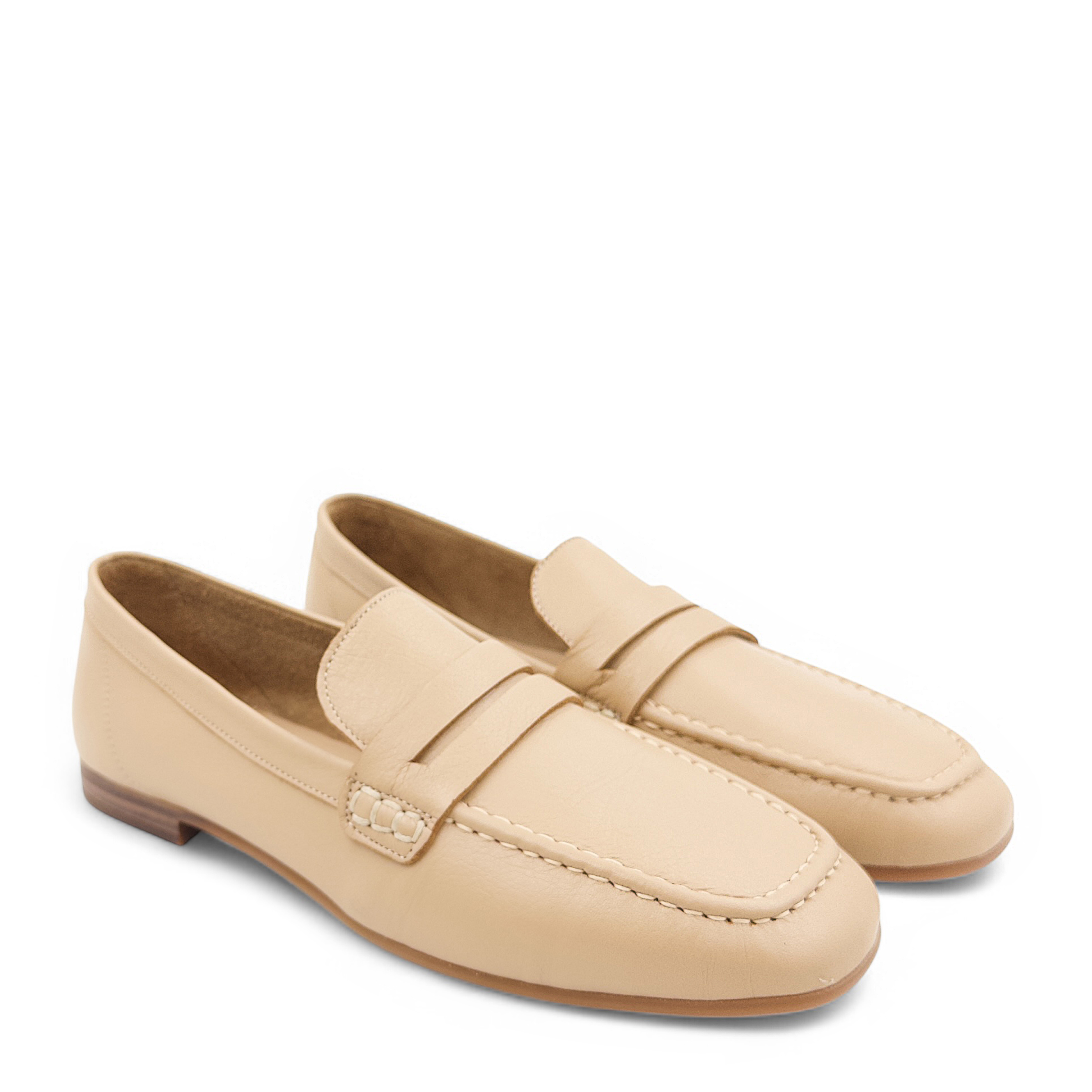 Γυναικεία ΜΟΚΑΣΙΝΙΑ από τη συλλογή MAGO, Μπεζ, Δερμάτινο με τακούνι χαμηλό 2cm