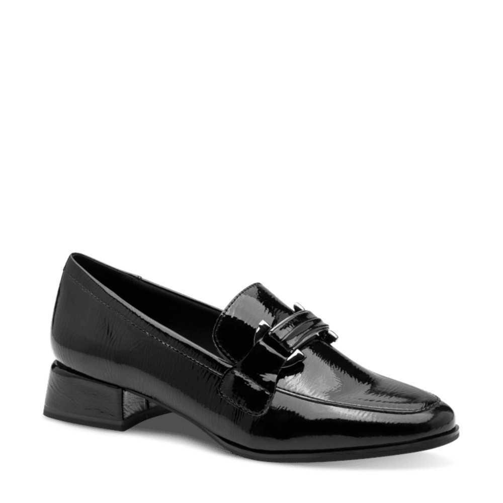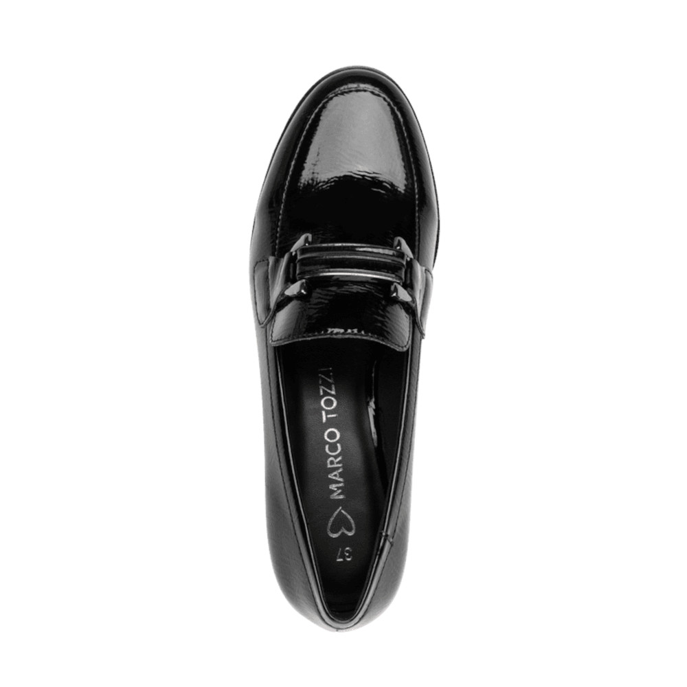Γυναικεία ΜΟΚΑΣΙΝΙΑ από τη συλλογή MARCO TOZZI, Μαύρο, Λουστρίνι τακούνι μεσαίο 4cm