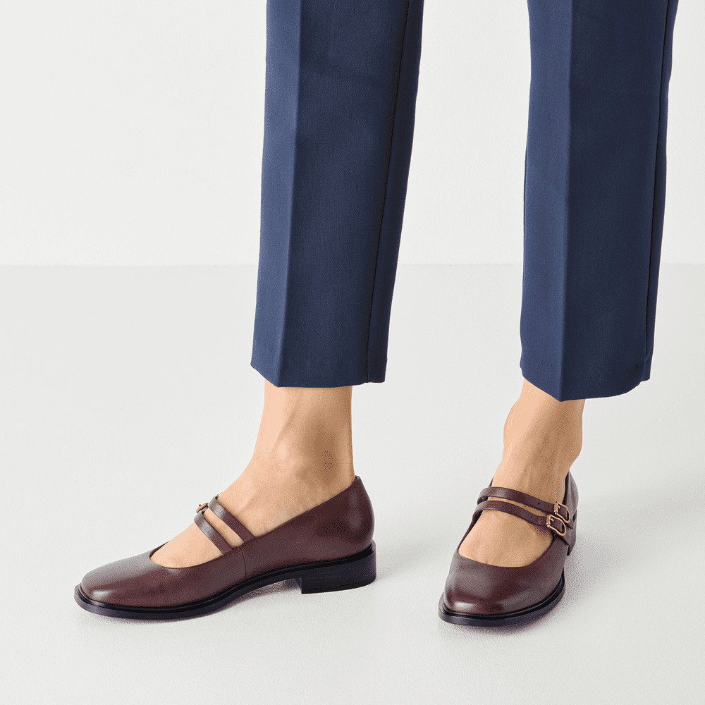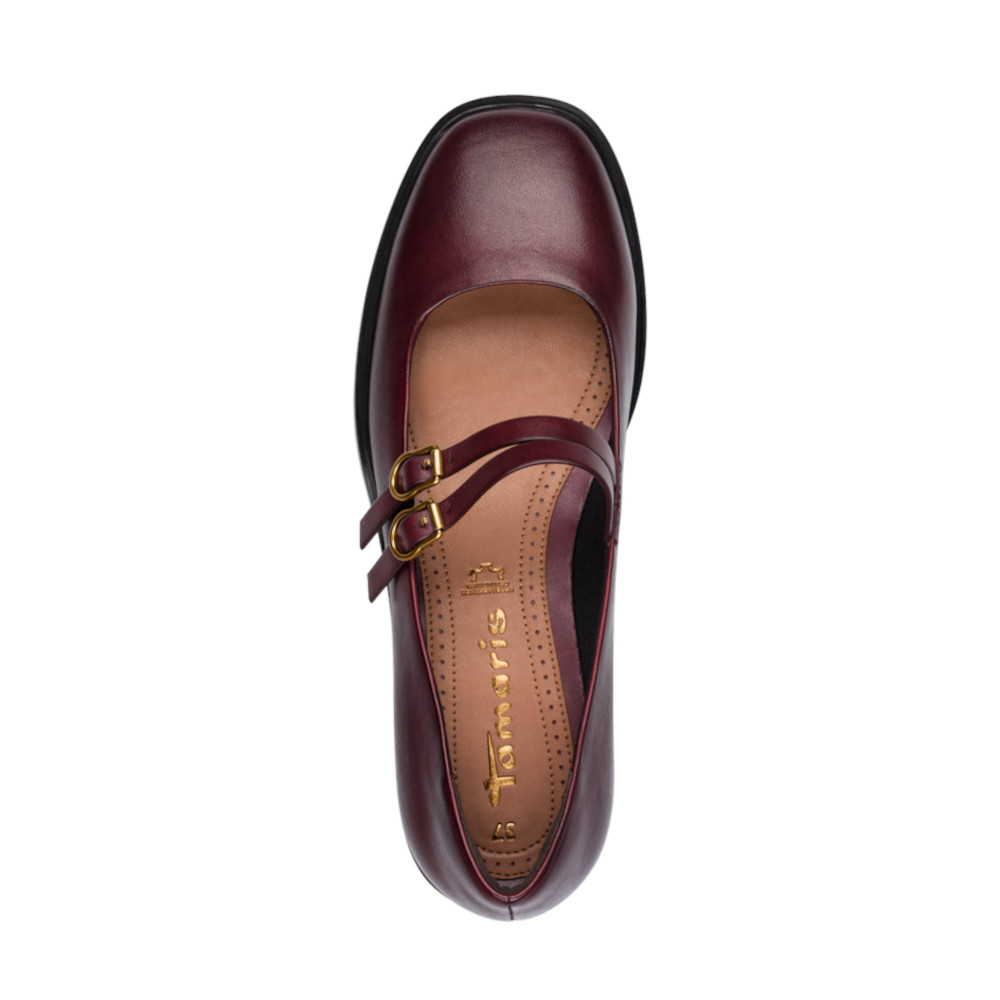 Γυναικείες ΜΠΑΛΑΡΙΝΕΣ από τη συλλογή TAMARIS, Μπορντώ, Δερμάτινο με τακούνι χαμηλό 3cm