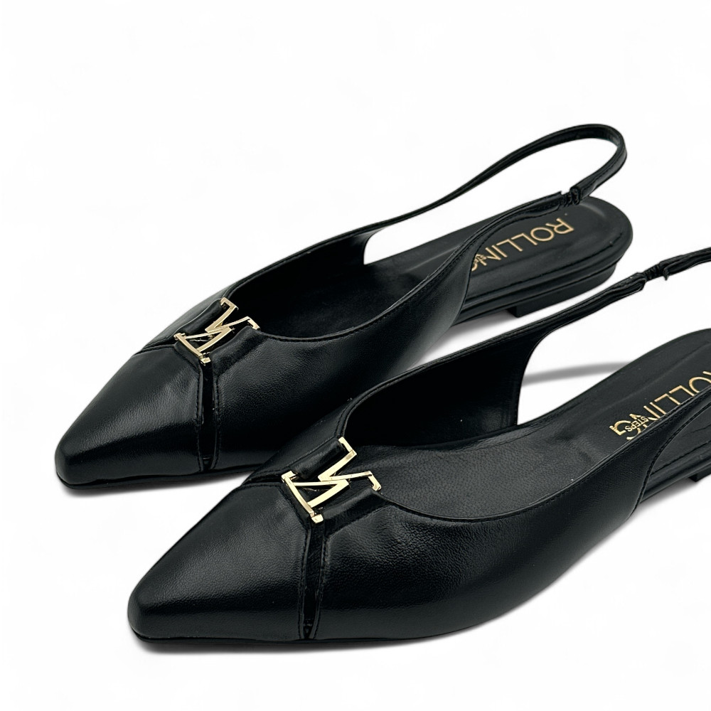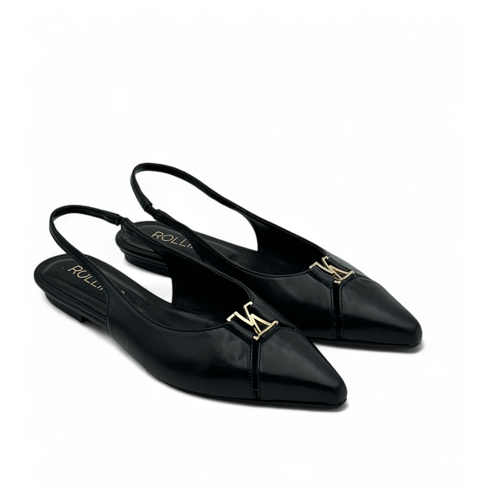 Γυναικείες ΜΠΑΛΑΡΙΝΕΣ από τη συλλογή ROLLING STEPS, Μαύρο, Δερμάτινο με τακούνι χαμηλό 2cm