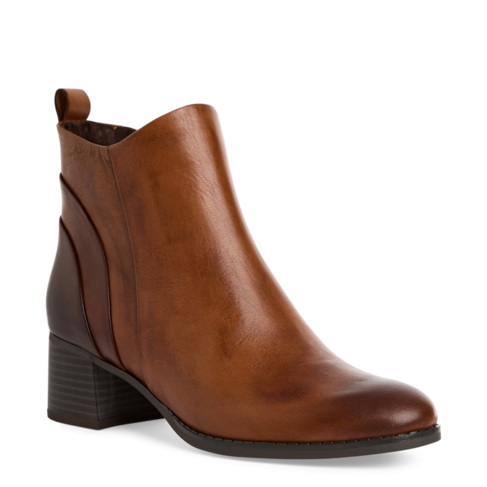 Γυναικεία ΜΠΟΤΑΚΙΑ από τη συλλογή MARCO TOZZI, Cognac, Δερμάτινο με τακούνι μεσαίο 5cm