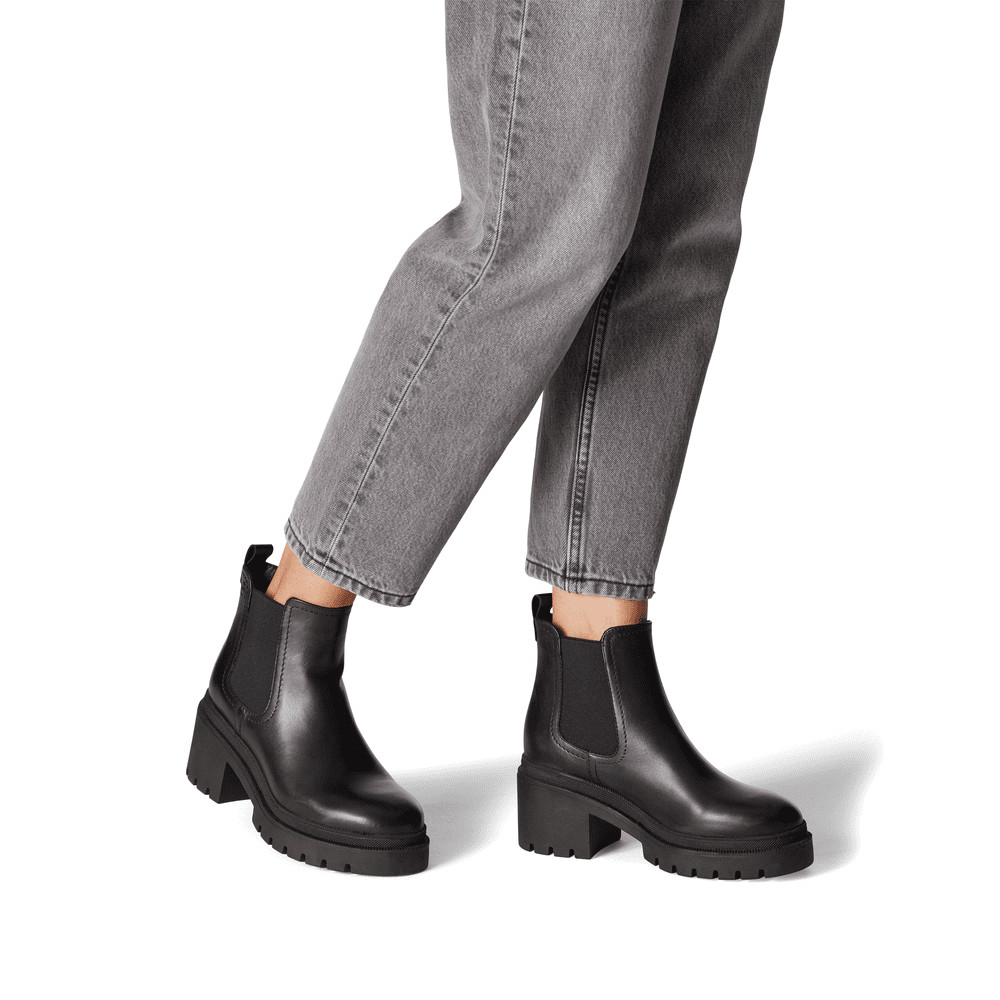 Γυναικεία ΜΠΟΤΑΚΙΑ από τη συλλογή TAMARIS, Μαύρο, Δερμάτινο με τακούνι ψηλό 8cm