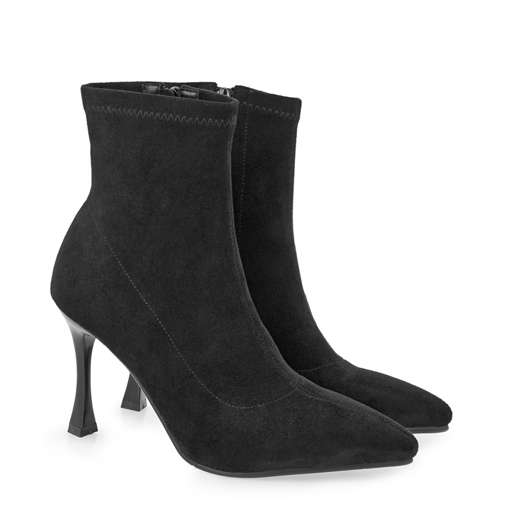 Γυναικεία ΜΠΟΤΑΚΙΑ από τη συλλογή SEVEN, Μαύρο, Υφασμάτινο με τακούνι ψηλό 9cm