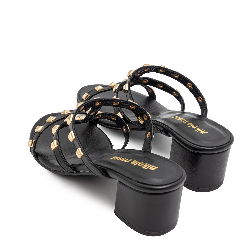 Γυναικεία MULES από τη συλλογή NIKOLA ROSSI, Μαύρο, Δερμάτινο με τακούνι μεσαίο 5cm