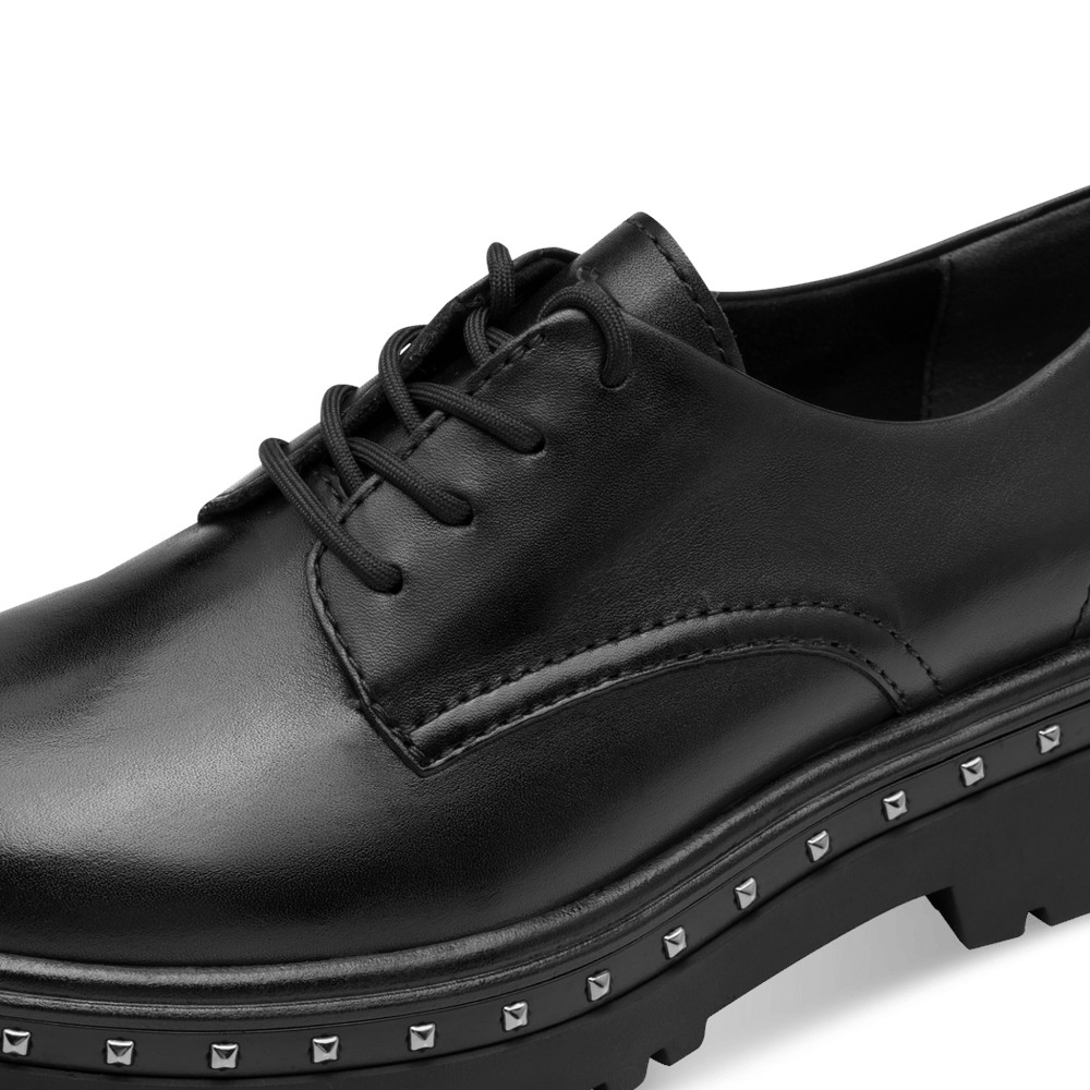 Γυναικεία OXFORDS από τη συλλογή TAMARIS, Μαύρο, Δερμάτινο με τακούνι μεσαίο 5cm