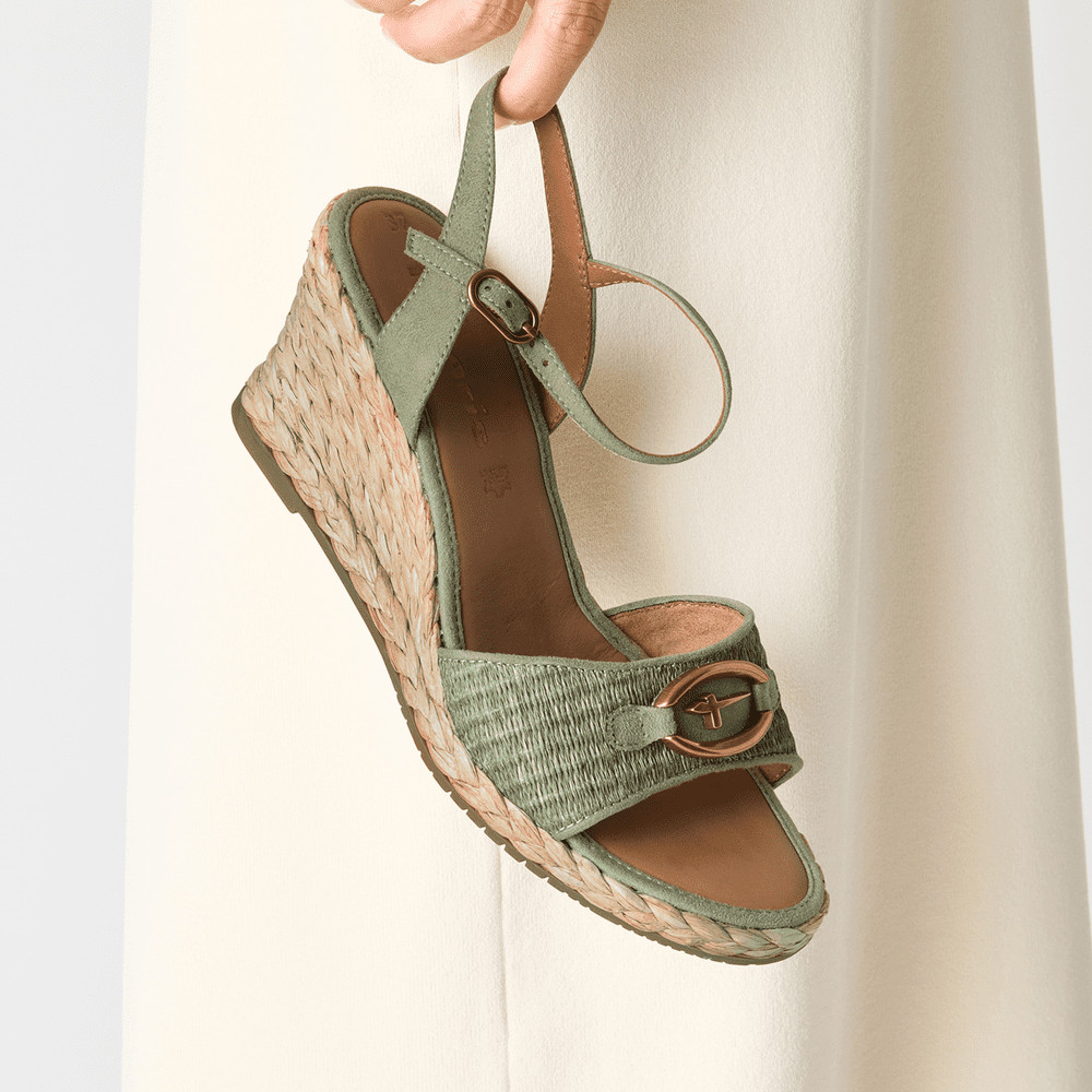 Γυναικείες ΠΛΑΤΦΟΡΜΕΣ από τη συλλογή TAMARIS, Λαδί, Ψάθα με τακούνι μεσαίο 7cm