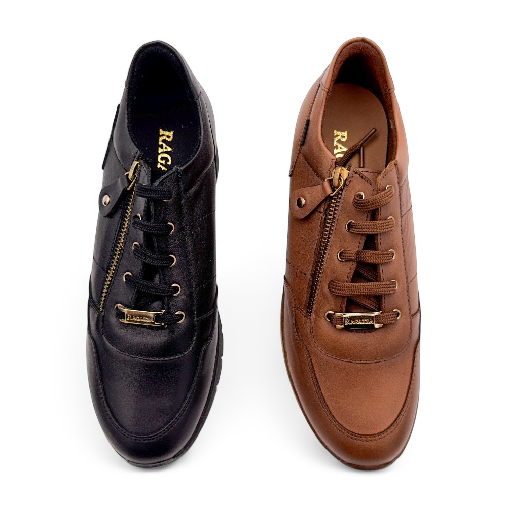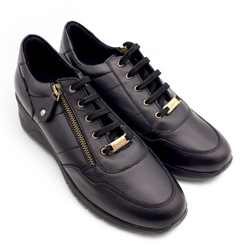 Γυναικεία SNEAKERS από τη συλλογή Ragazza, Μαύρο, Δερμάτινο με τακούνι μεσαίο 5cm