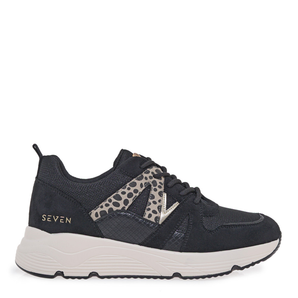 Γυναικεία SNEAKERS από τη συλλογή SEVEN, Μαύρο, Συνθετικό με τακούνι μεσαίο 4cm