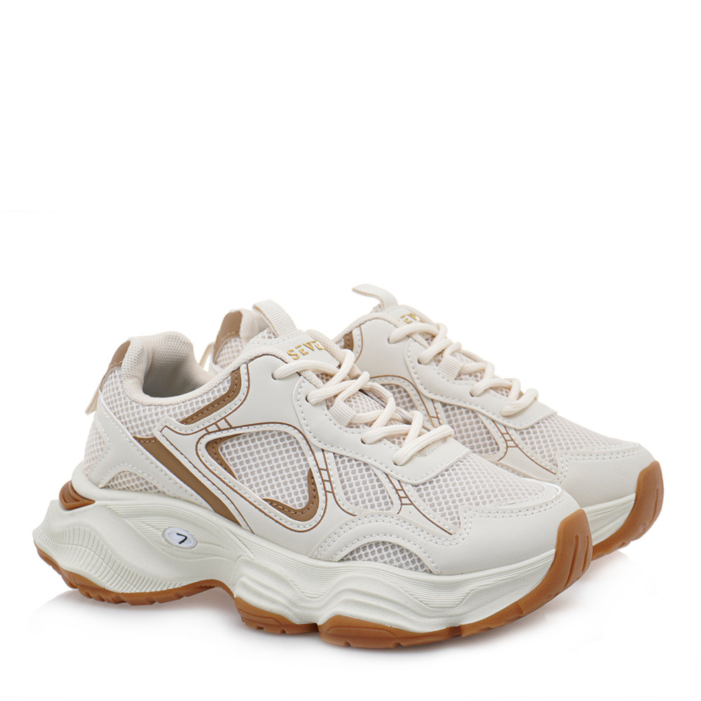 Γυναικεία SNEAKERS από τη συλλογή SEVEN, Off White, Συνθετικό με τακούνι μεσαίο 5cm